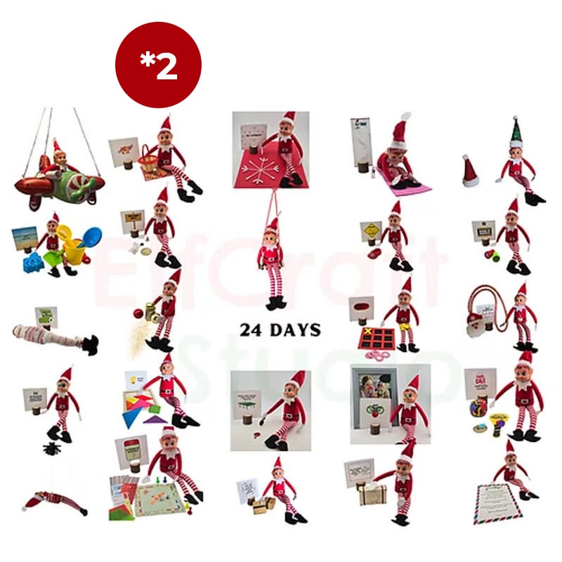 - Cada actividad de los elfos será etiquetada y empaquetada por separado con instrucciones fáciles de instalar. Todos los materiales para la instalación estarán incluidos en los paquetes individuales. Las actividades/materiales varían cada día. Este kit es para un solo elfo, aunque algunos días pueden ser compartidos.