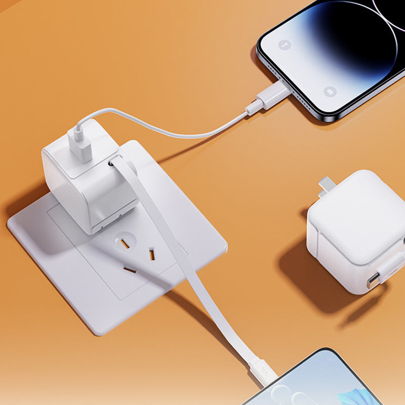 - Il caricatore da muro retrattile per telefono ha una porta USB-A e un cavo retrattile Type-C per caricare 2 dispositivi contemporaneamente. Fornisce fino a 20W di capacità di ricarica rapida stabile ed efficiente.