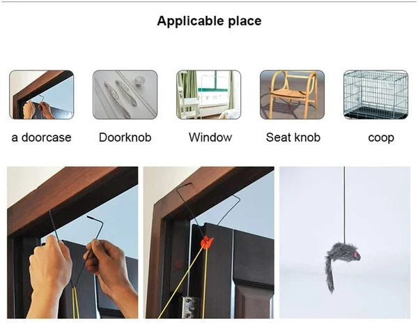 Mouse appeso Grazie ai ganci triangolari, è possibile appendere il giocattolo alla trave della porta o alla sedia e il gatto può interagire liberamente con il giocattolo invece di sdraiarsi sul letto.