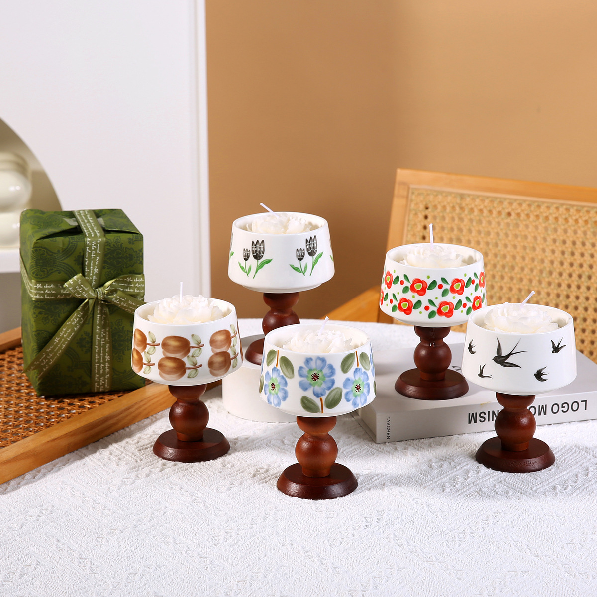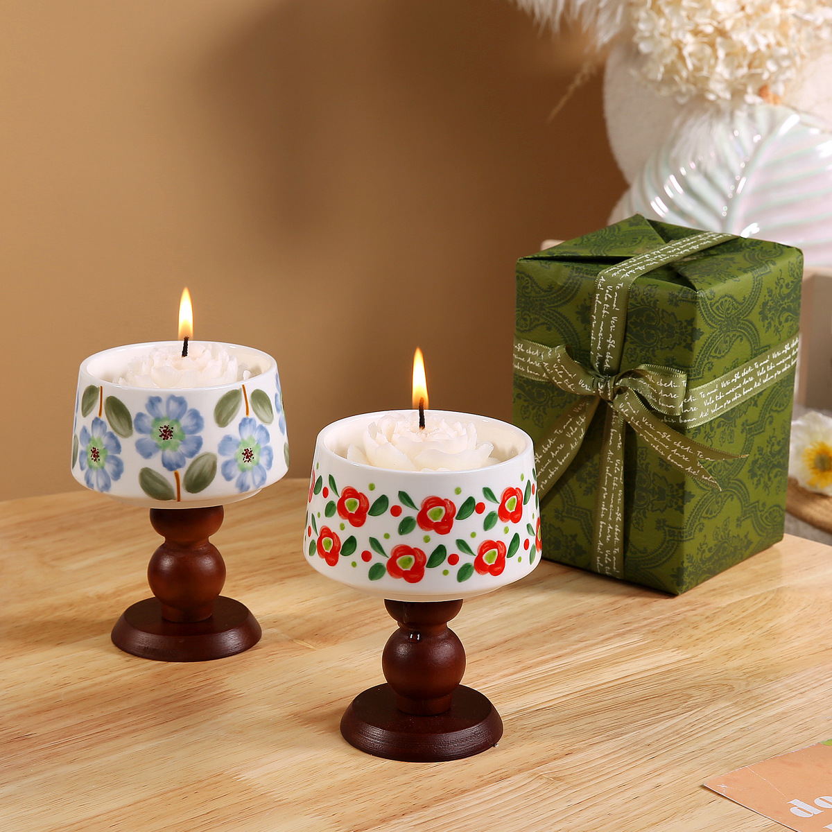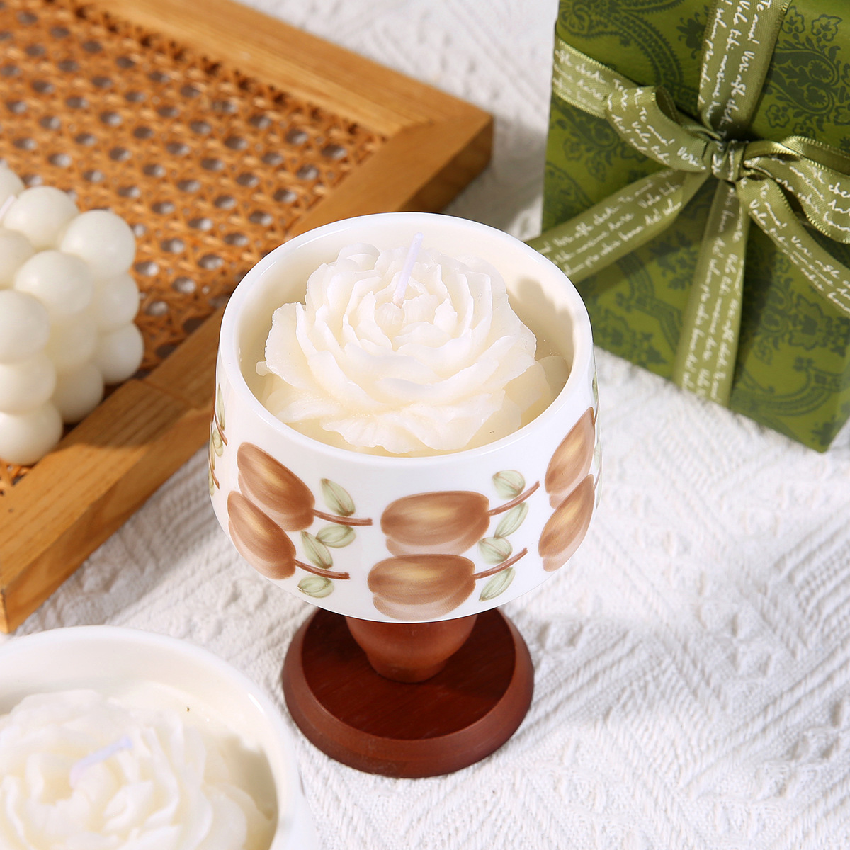 Candela di fiori secchi in ceramica per aromaterapia