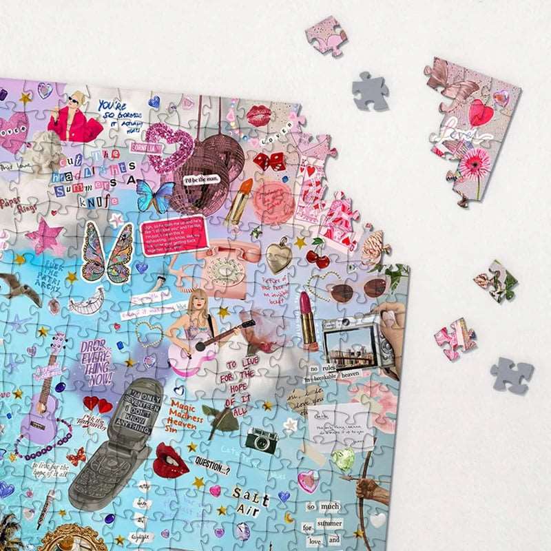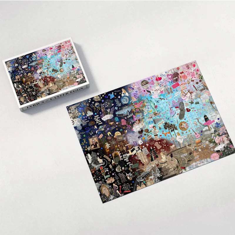 Rilassatevi con stile con questo puzzle, perfetto per amici e familiari. È pieno di centinaia di testi e sorprese pasquali. Riuscirete a trovarli tutti? Preparatevi a risolvere i rompicapo con il nostro puzzle ispirato ai testi delle canzoni di Taylor Swift! Pieno di gemme nascoste e testi divertenti, questo puzzle è perfetto per riunire amici e familiari. Riuscirete a scoprire tutti gli easter egg e le spiritose trovate linguistiche nascoste all'interno?