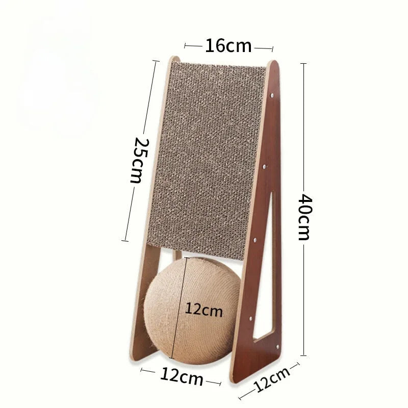 - Il gioco da arrampicata Cat Scratching Board è caratterizzato da un design triangolare unico che serve a due scopi: una superficie di graffiatura resistente e una palla interattiva in sisal. Questo design a doppio uso massimizza lo spazio e offre al gatto un'allettante alternativa al divano o al tappeto.